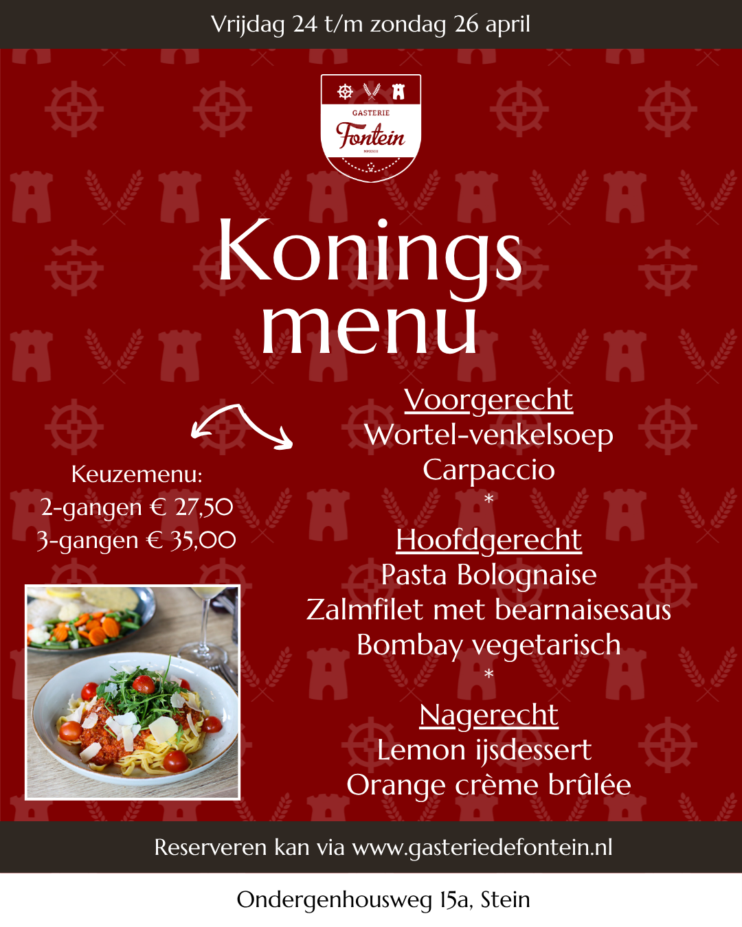 Geniet jij met ons mee? Reserveer dan snel je tafel via onze website of stuur een mail naar info@gasteriedefontein.nl.